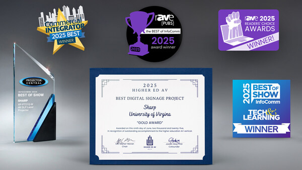 MONTVALE, N.J., July 10, 2025 /PRNewswire/ -- Sharp Imaging and Information Company of America (SIICA) announces today that it has secured eight Pro AV technology awards during InfoComm 2025, showcasing its leadership and innovation in the industry. This year, Sharp focused on highlighting new products like its All-in-One Direct View LED Series, XP-P721Q Laser Projector, MultiSync® PN-M Series Displays and PN-LM Series AQUOS BOARD® Displays, which received accolades from Commercial Integrator, Projector Central, rAVe and Tech & Learning.